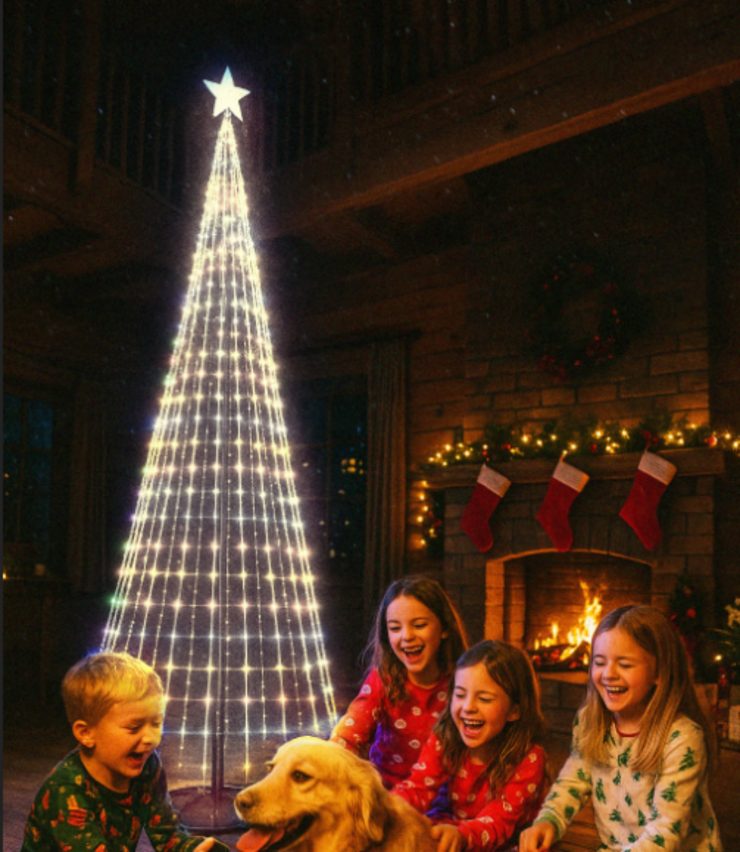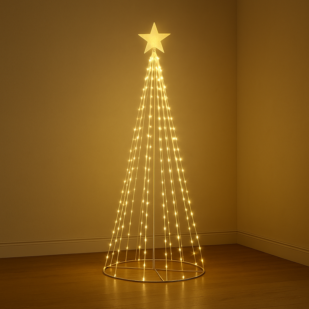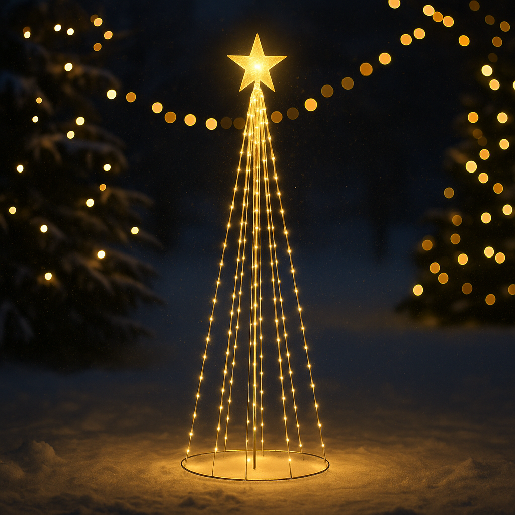 Construit pe un cadru metalic stabil și durabil, bradul este potrivit atât pentru interior, cât și pentru exterior (balcon, terasă, grădină). Clasa de protecție IP44 asigură rezistență la umiditate și ninsoare, garantând utilizarea în siguranță.