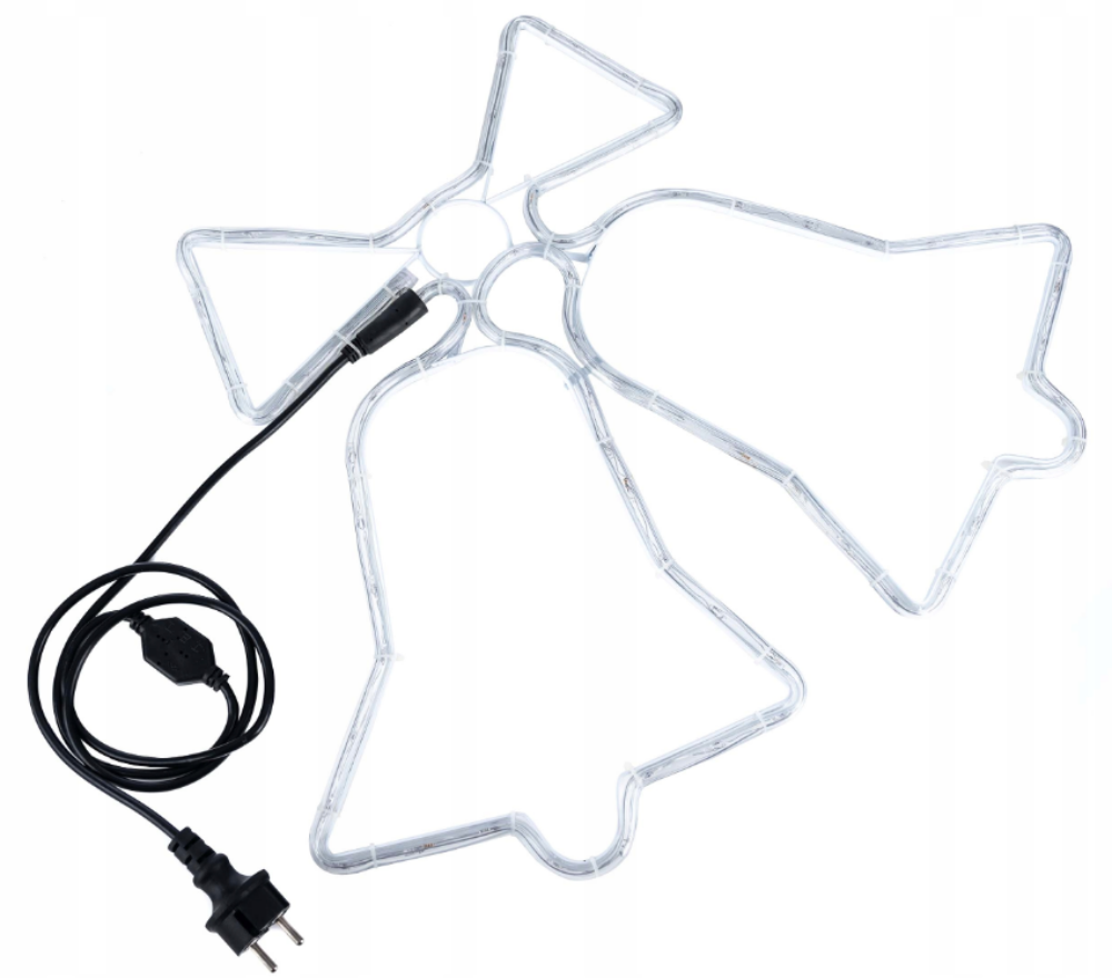 Creează o atmosferă spectaculoasă de Crăciun cu această decorațiune luminoasă LED în formă de clopoței cu fundă, un element decorativ elegant, ideal pentru interior sau exterior.