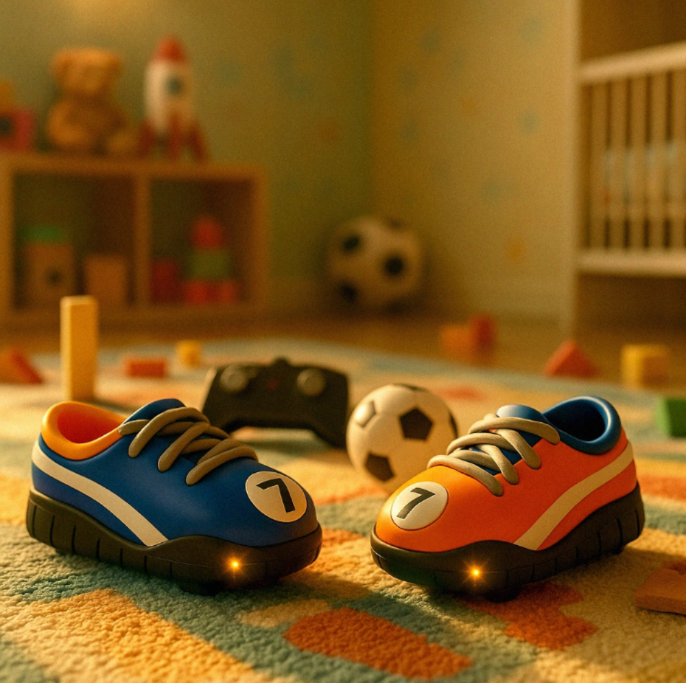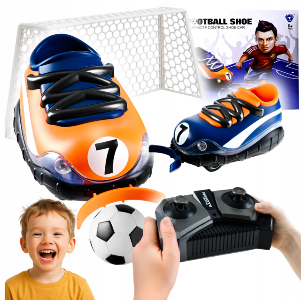 Transformă jocul de fotbal într-o experiență distractivă și inovatoare cu setul Autodrom RC, unde jucătorii controlează mașinuțe colorate în formă de pantofi sport care împing mingea spre poarta adversarului!